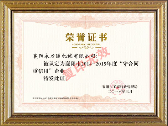 永力通機(jī)械榮譽(yù)資質(zhì)